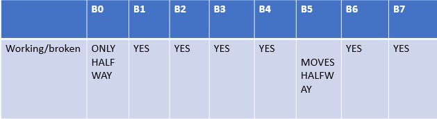 I then looked through my code and realised that I did not code B0! I added support for B0 into my code but it still did not move properly. When I held the B0 servo in my hand, I could feel it pulsing. I then replaced the servo on pin B0 and although it now works, it is still not moving the amount required.
